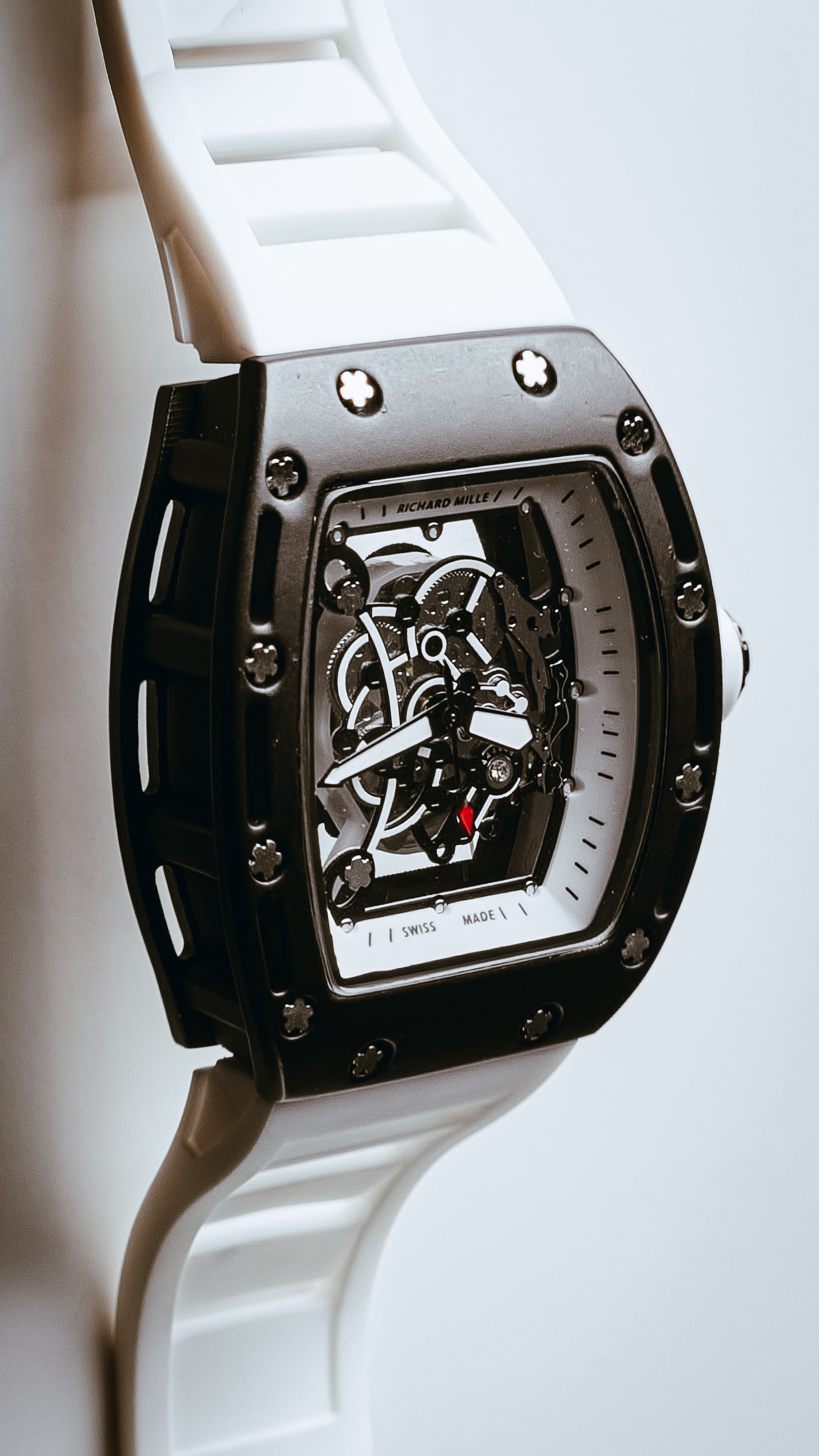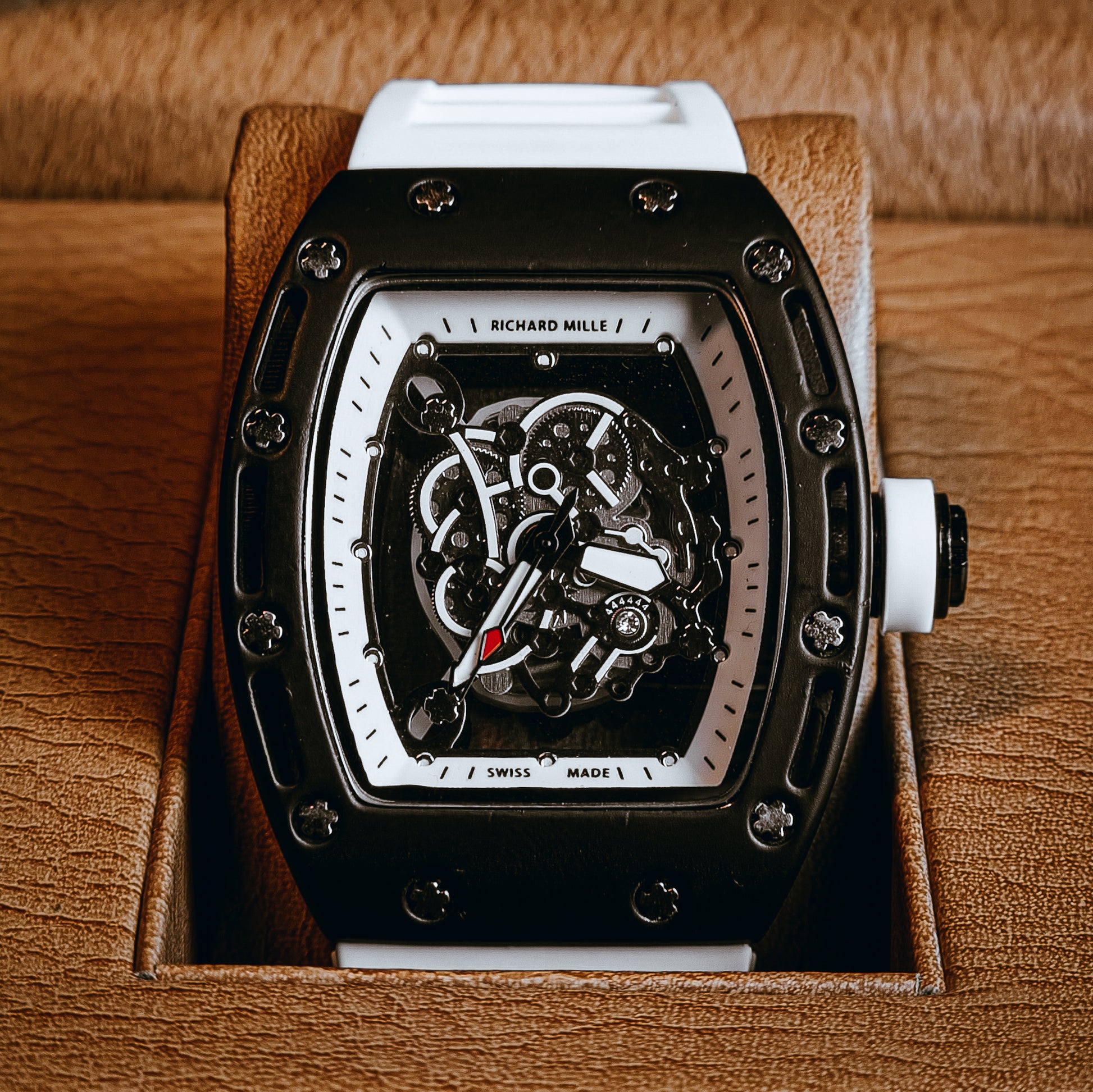 The clean white aesthetic gives this timepiece a fresh, contemporary edge while maintaining the signature sporty-luxury appeal associated with RM-inspired models. It’s bold yet elegant, technical yet wearable — a true statement for collectors and style enthusiasts alike.